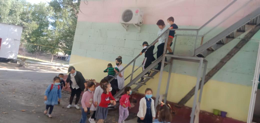 № 03-5076 хатына сәйкес Жамбыл облысының аумағындағы азаматық қорғау саласында оқу-жаттығулар мен машықтануларды өткізу жоспарын орындау мақсатында Байзақ ауданы аймағындағы білім беру ұйымдарында обьектілік оқу-жаттығуларды өткізу жоспарына сәйкес "Бәйтерек" бөбекжай-бақшасында 24.09.2021жұлдызында өткізілді.
