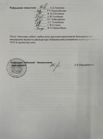 2024 - 2025 оқу жылында ата - аналарға арналған консультациялық пункт қызметінің іс-шаралар қызметімен таныстыру.