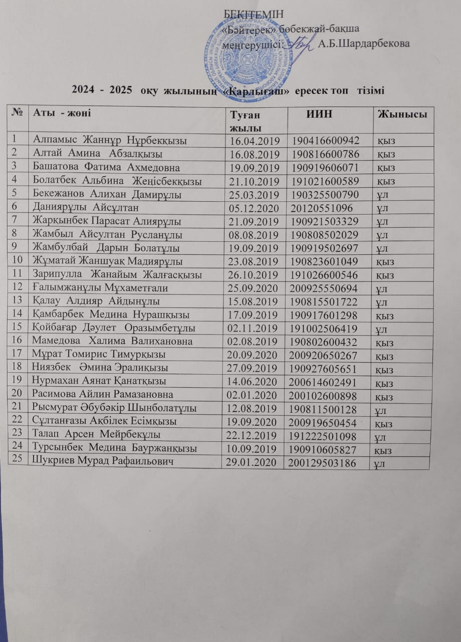 Тәрбиешілер: Кашкеева К.К. Сегізбай А.И.